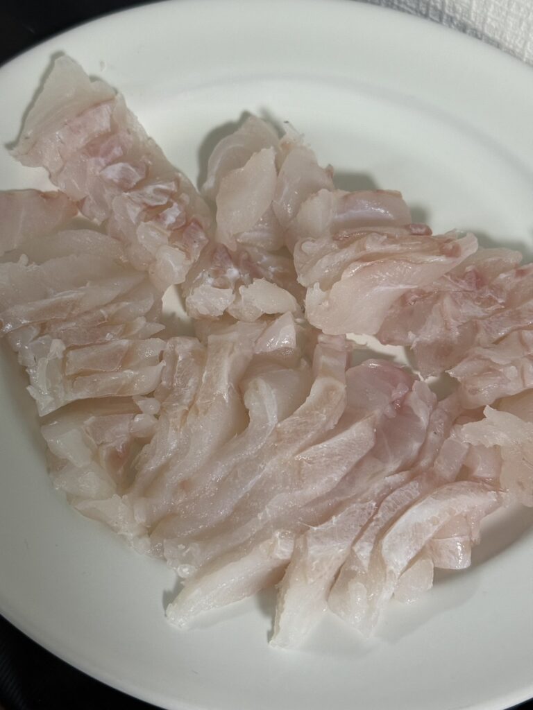釣った魚は帰宅後すぐにさばきました。クエ刺にクエ鍋などの新鮮な海の幸に舌鼓を打ちました。