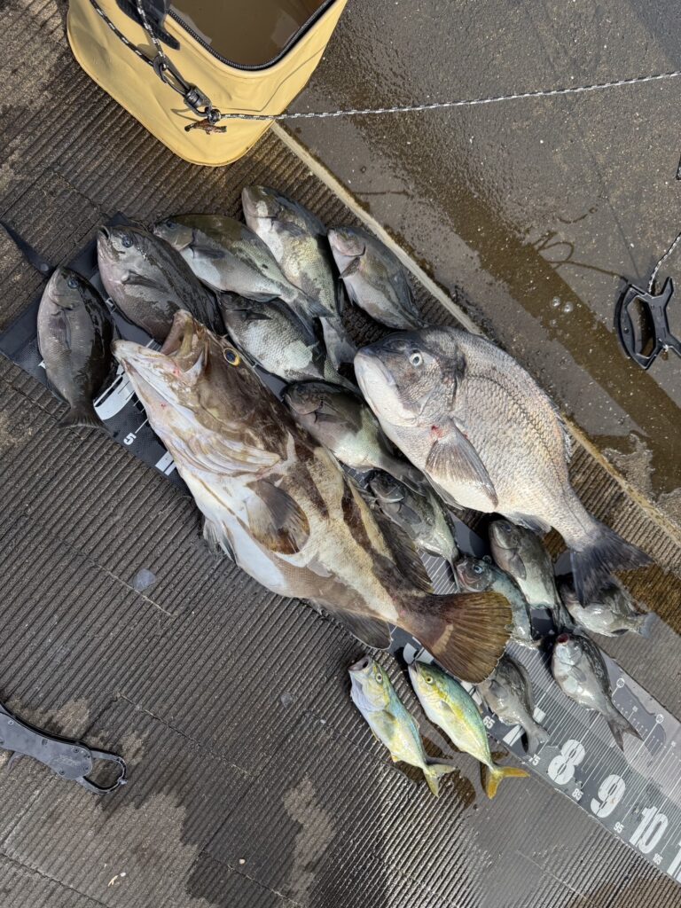 最大のヒットはなんと60cm超えのクエ!その後も次々と釣れる魚に、メンバーのテンションは最高潮でした。
